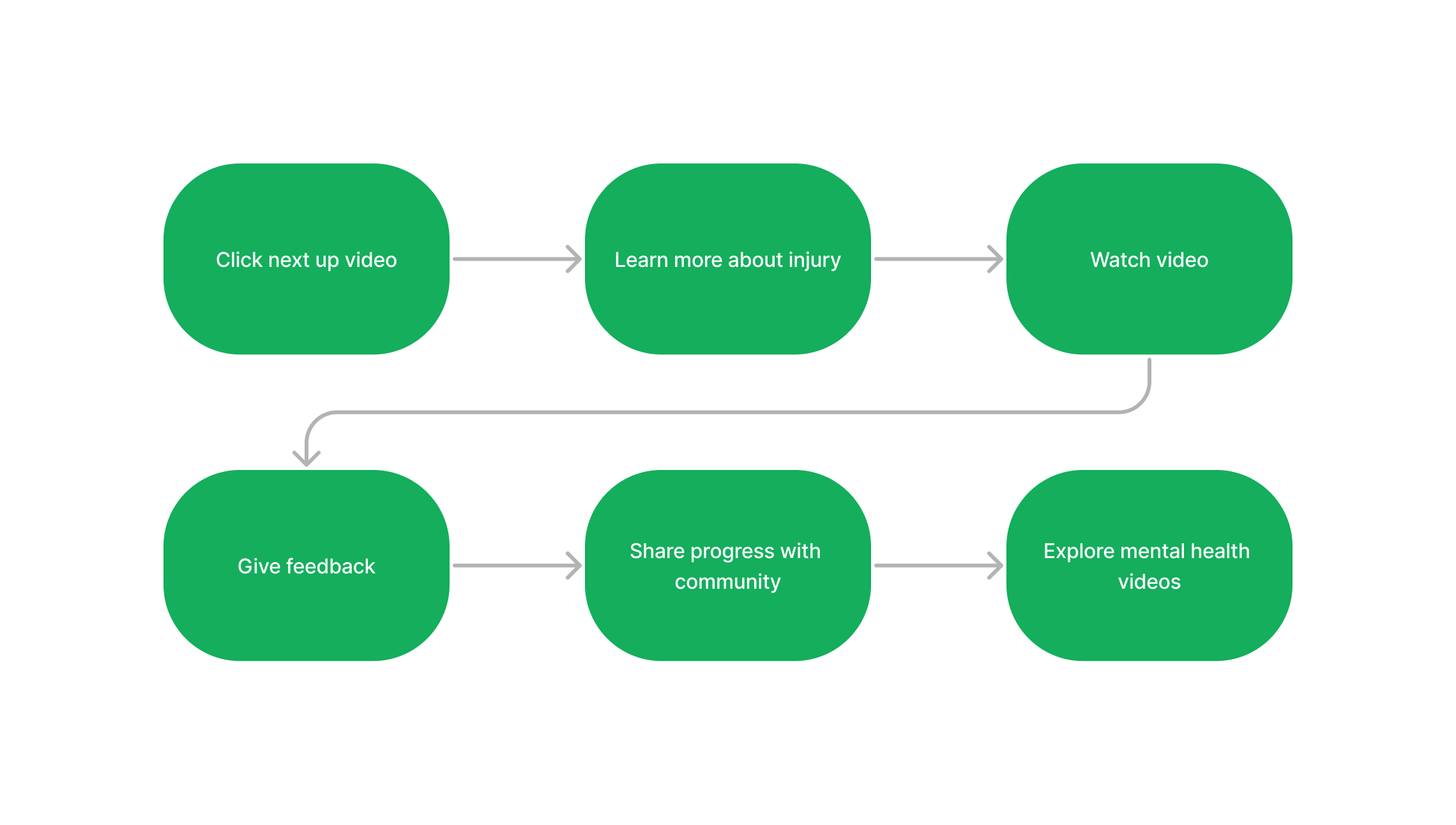 The userflow focuses on guiding the user through their recovery process while informing them about their injury.